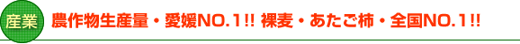 県内一を誇る水田面積は4,058ヘクタールと、県内の23.8%を占めており、県下第2位である北宇和郡が10.61%ですから2倍以上という広さです。また、全国一の生産量を誇る裸麦やあたご柿、春の七草、県下一の収穫量を誇る水稲、メロン、にんじん、ほうれん草、ねぎ、いちご、キャベツ、きゅうり、梅など多くの農作物を供給する生産都市となっています。