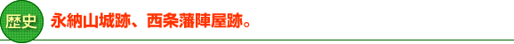 西条市内では、中国や朝鮮半島からの侵攻に備えて7世紀後半頃に築城された山城と推定される国史跡の「永納山城跡」や、古代の道路遺構が発掘されており、有史以来、この地域が環瀬戸内圏における交通の要衝であったことが伺えます。